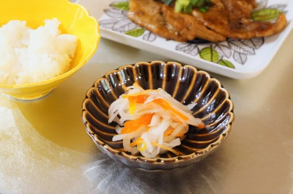 大根と細切りにした市田柿を甘酢で和えると、柿の自然な甘さが活きた、上品で爽やかな風味のなますに仕上がります。