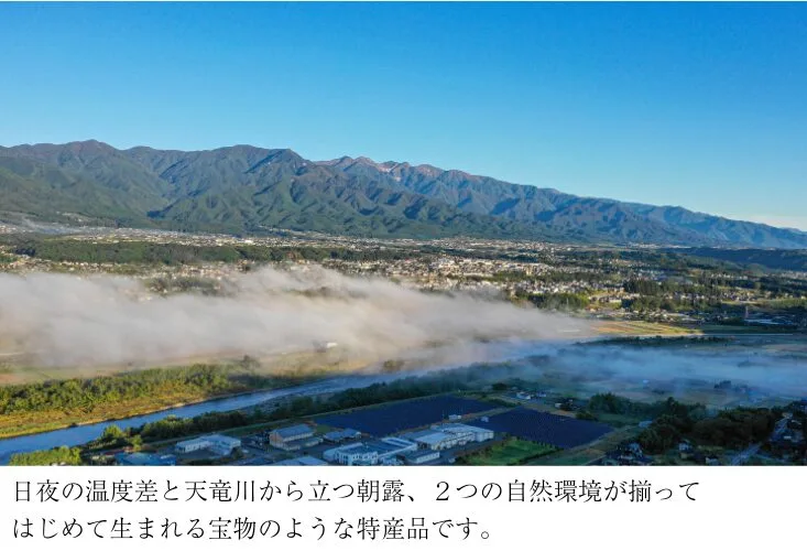 美味しさの鍵を握るのは、地域を流れる天竜川から立ち上る「川霧」