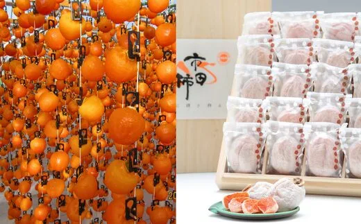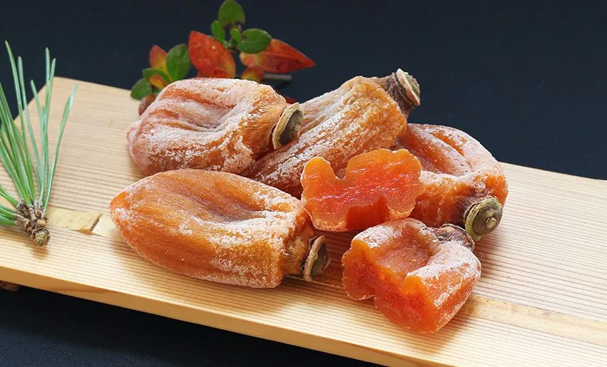 干し柿には水分を多く残した「あんぽ柿」と、水分を30%程度まで抜き白い粉を吹かせる「ころ柿」があります。