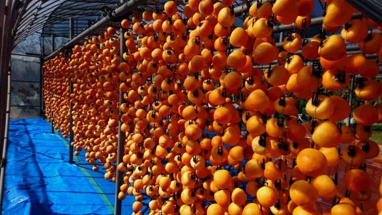 この霧が乾燥過程で適度な湿度を与えることで、柿が一気に乾燥しすぎるのを防ぎ、時間をかけてじっくりと甘さを凝縮させます。