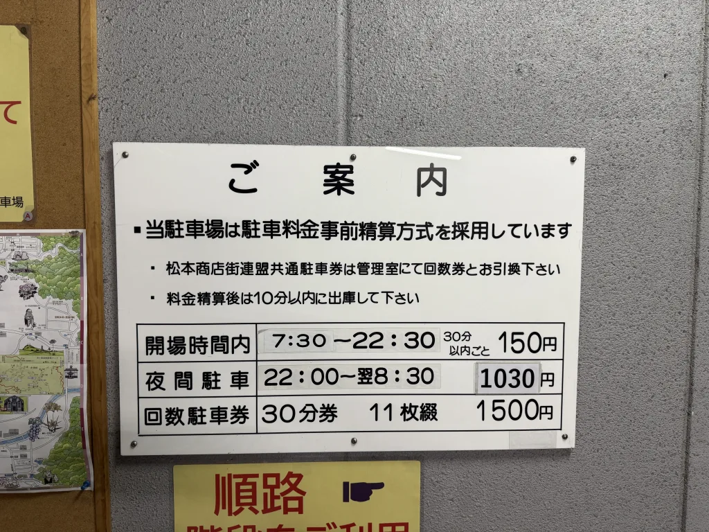 - この駐車場の料金は、普通自動車・軽自動車の場合「30分以内ごと150円(税込)」です。