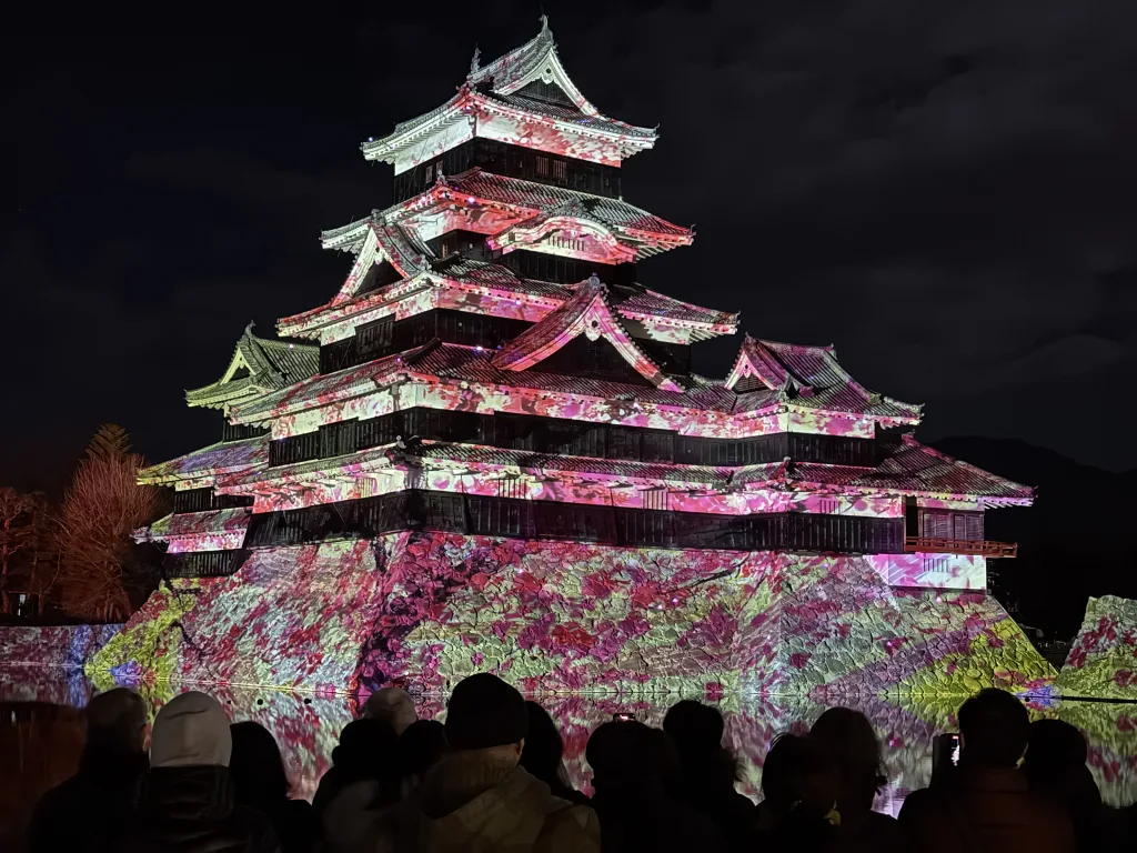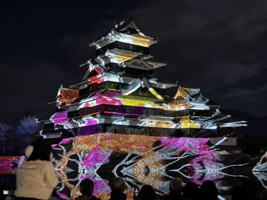 松本城のプロジェクションマッピングは、極寒に耐えてでも見る価値のある絶景です。