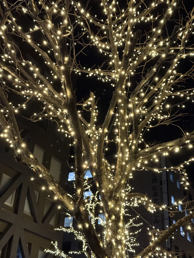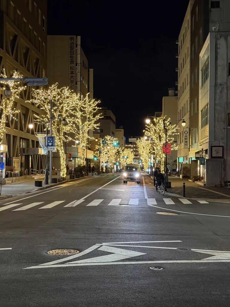 駐車場から松本城までは街路樹のライトアップも楽しめる!