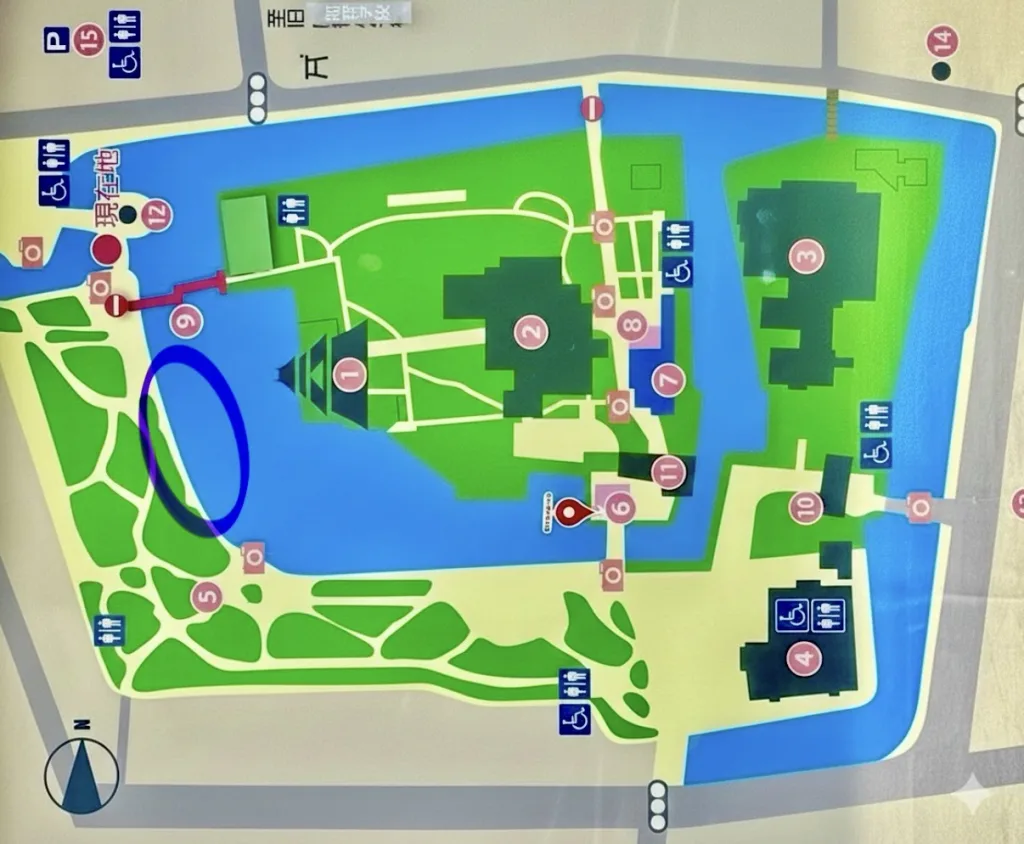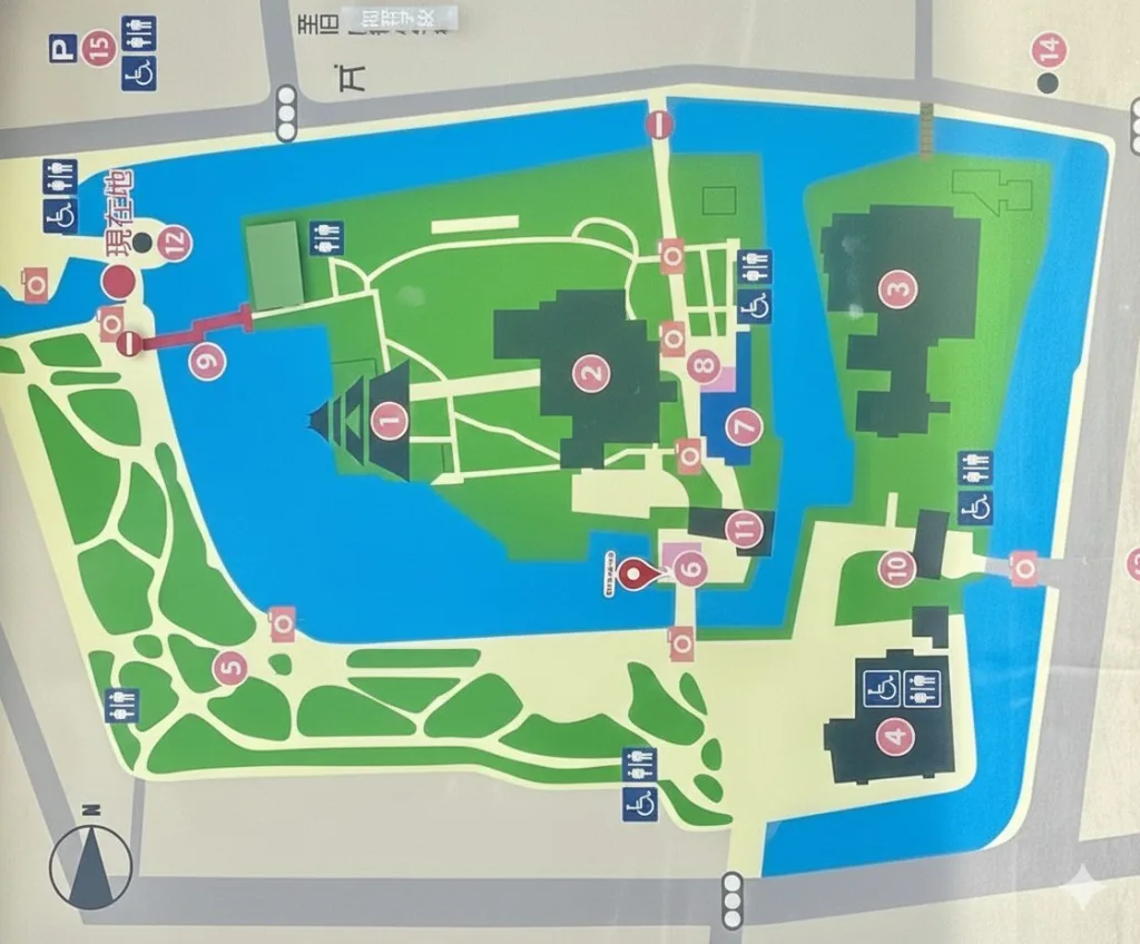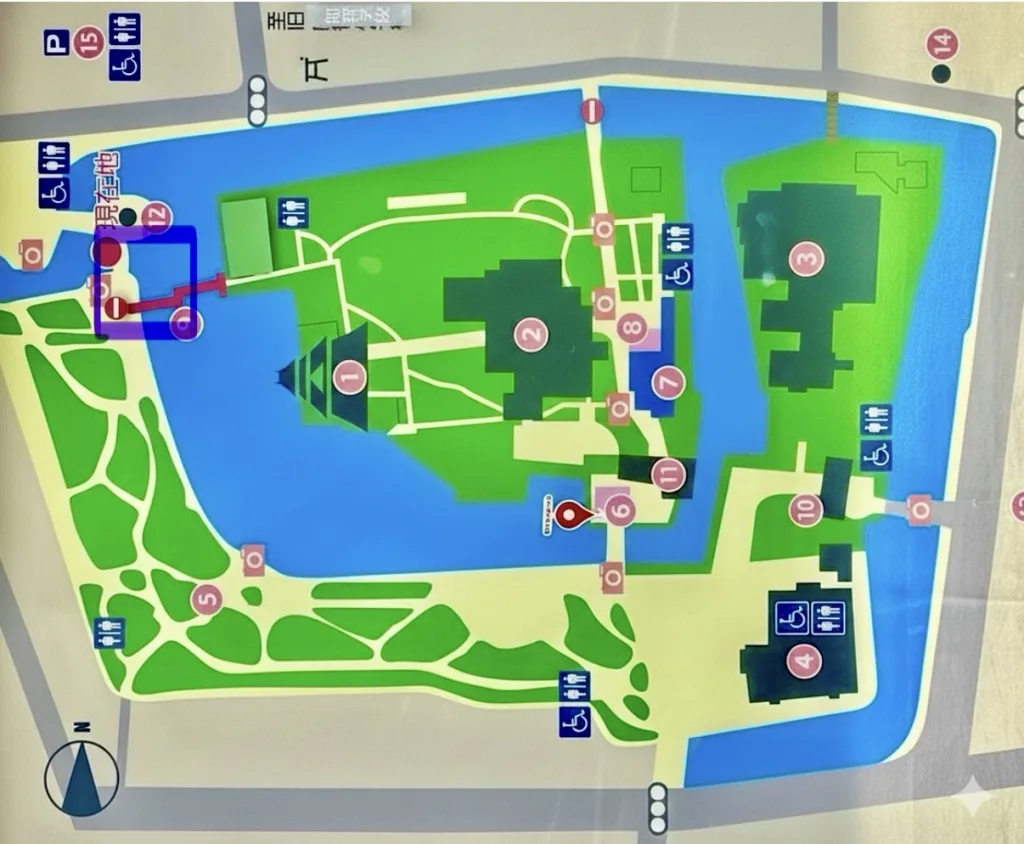 - 城の主要入口(黒門付近)まで徒歩約5分(約350m)でアクセス可能。極寒の中での移動距離を最小限に抑える最強ルートです。