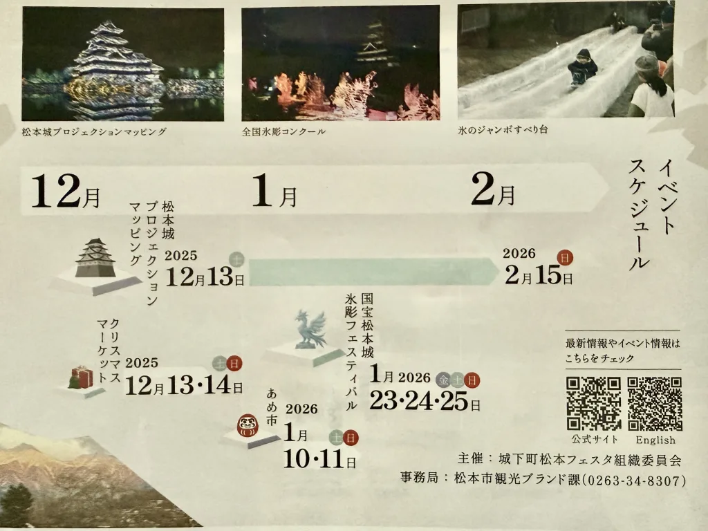 - 国宝松本城氷彫フェスティバル:1月23日(金)〜1月25日(日)