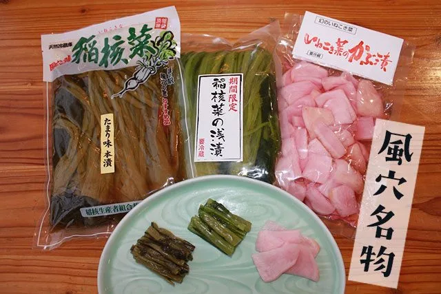 - 【その場で味わう絶品グルメ】 十割蕎麦、稲核菜の漬物。