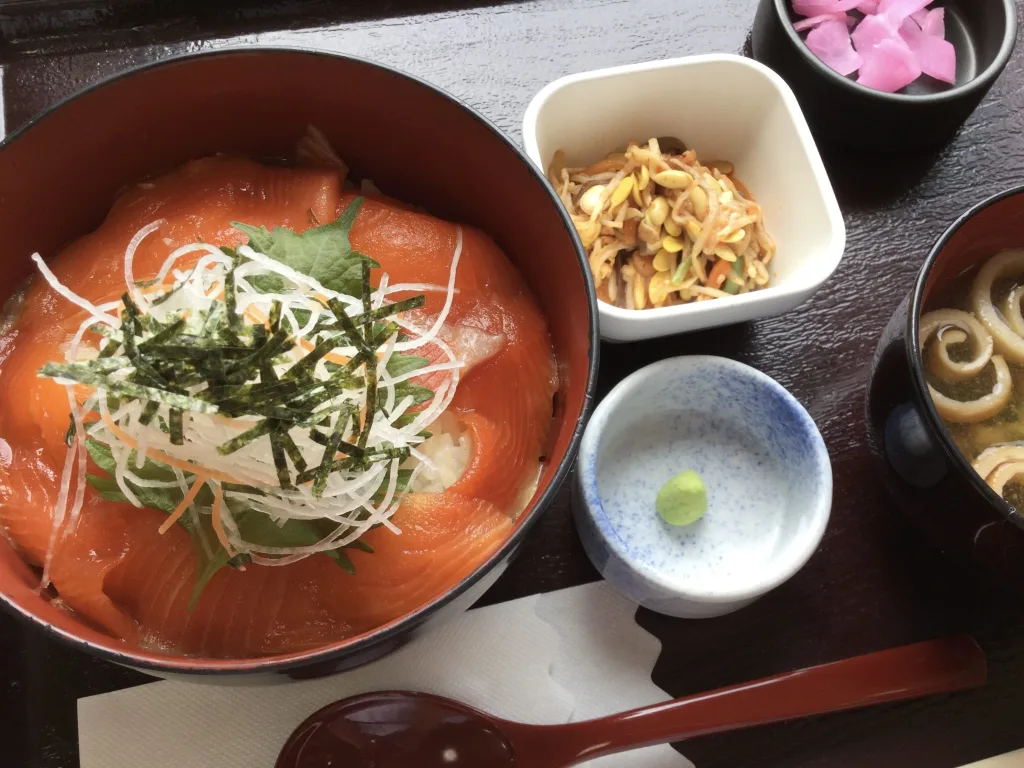 - 信州サーモン漬け丼(1,300円)。