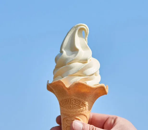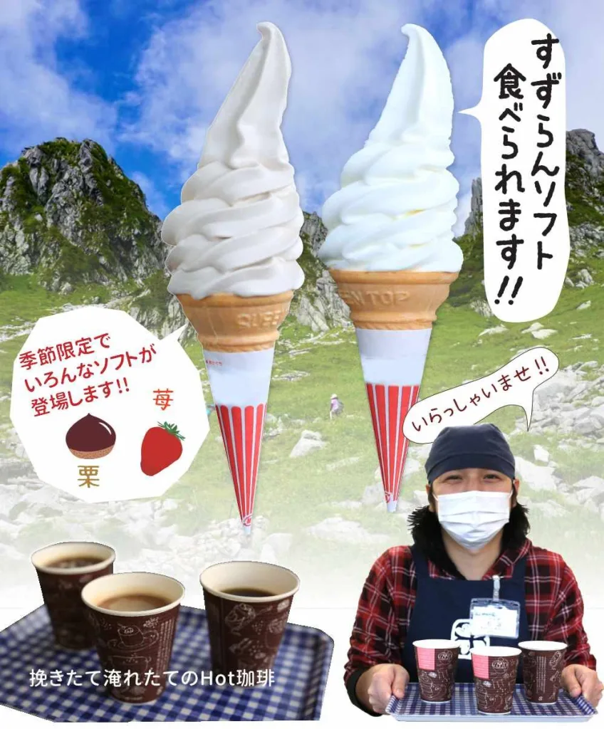 - 【その場で味わう絶品グルメ】 すずらんソフト(350円)。