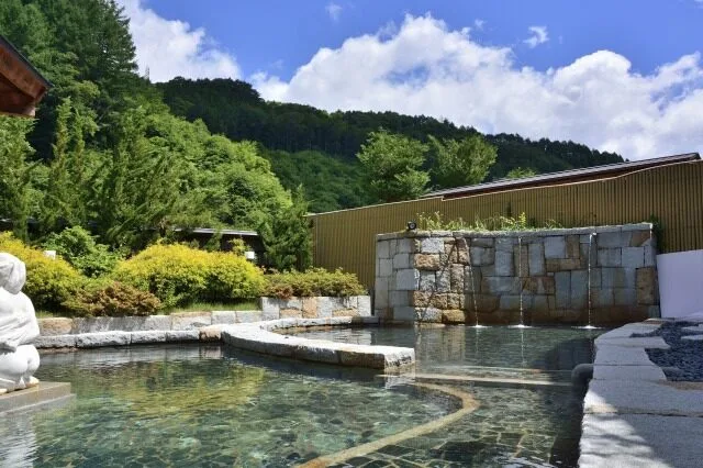高原の爽やかな風を感じながら、温泉と地元グルメを同時に楽しめます。