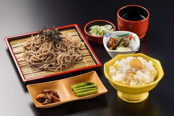 - 手打ち天ざるそば(1,500円):地元産そば粉100%。