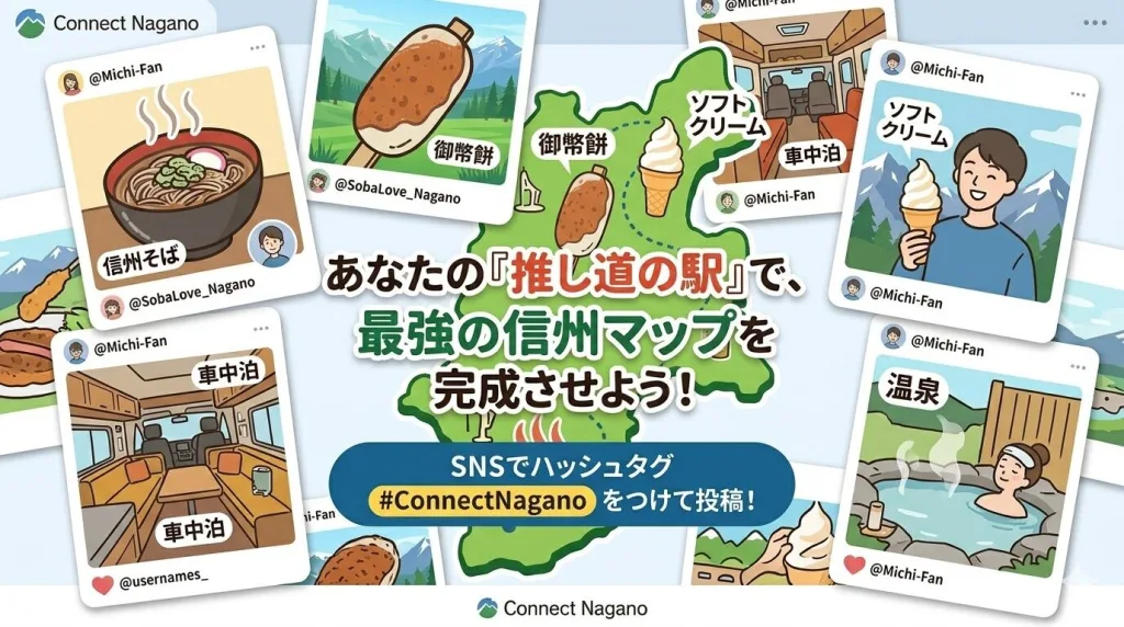 「この道の駅の車中泊環境が最高だった」など、あなたのリアルな感想をぜひSNSで教えてください。皆様からいただいた情報を元に、世界に一つだけの「最強の信州道の駅マップ」を一緒に完成させていきたいと考えています。